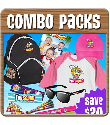 Save When You Purchase a Pack!! Small Combo Pack Includes: T-shirt Hat Sunglasses (1 pair) Bookmarks (2) Stickers (4) Temporary Tattoos (5) Pencils (4) Please Note: Most of our Merch is custom created special for each of our fans! Please...